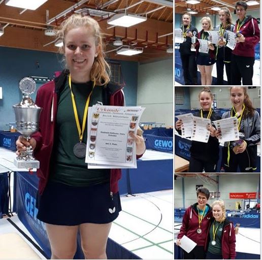 Die diesjährigen Bezirksmeisterschaften in Bergheim verliefen für die Fritzdorfer Damen Stephanie Hoffmann, Petra Schoulen und Charlotte Schönau recht erfolgreich. So konnten sich die drei Spielerinnen in der A Konkurrenz in den Vorrundenspielen durchsetzen, Petra Schoulen allerdings bei einer Niederlage nur aufgrund des besseren Satzverhältnisses vor Felina Busch (Fortuna Bonn). Im Viertelfinale behielten unsere drei Fritzdorferinnen problemlos jeweils mit 3:0 die Oberhand. Den Einzug ins Finale schafften dann die an Eins gesetzte Stephanie Hoffmann und die Bonnerin Felina Busch, denn Hoffmann hatte Schoulen souverän mit 3:0 besiegt, während Schönau nach einer 2:0-Führung gegen Busch den Ausgleich hinnehmen musste und schlussendlich in fünf Sätzen unterlag. Im Finale tat sich Hoffmann nur im ersten Satz schwer: Nach 7:9-Rückstand holte sie sich den aber noch mit 11:9. Danach spulte die Fritzdorfer Nummer eins routiniert gegen die immer unkonzentrierter agierende Bonnerin ihren Part herunter und sicherte sich souverän mit 11:6 und 11:2 den Titel. Im Doppel allerdings mussten Stephanie Hoffmann/Petra Schoulen gegen Felina Busch/Charlotte Schönau eine nicht erwartete Niederlage hinnehmen.
